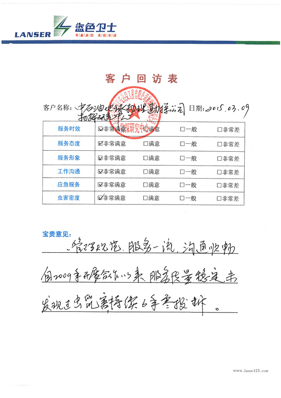 • 中石油物探公司的回訪評價
